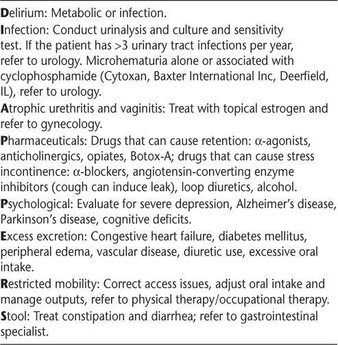 Treatable causes of incontinence (represented by the acronym DIAPPERS)
