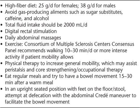 Lifestyle recommendations for treating bowel dysfunction in patients with multiple sclerosis