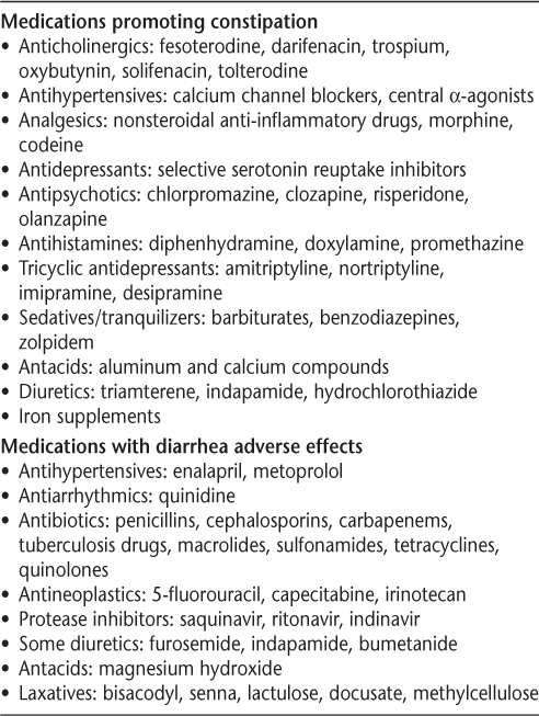 Medications that may cause constipation or diarrhea19