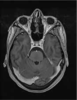 Postcontrast magnetic resonance image of brain show nonenhancing changes in pons
