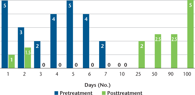 Numeric rating scale pain scores daily pretreatment and posttreatment and at indicated follow-up intervals