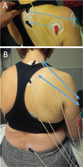 The stated purpose of Scrambler therapy is to provide “nonpain” information to replace continued pain-generation impulses.7 To do this requires capturing the surface receptors of the C-fibers (and perhaps other fibers) in the dermatome of the affected nerves. The placement is performed to also avoid putting an electrode directly on an area of damaged nerve sensation. This patient's worst pain was in the C6, C7, C8 distribution and involved the distal arm to the axilla; she also had pain in the T1, L5 distribution. To begin, we placed sets of electrodes (“channels”) in the C6 and C8 dermatomes in an area of normal sensation, approximately 8 inches apart, being careful to stay above the area of distal allodynia and pain (Figure 2). At the end of day 1 treatment her NRS pain score decreased to 1 of 10 and her allodynia was improved. By day 2, the pain had returned to 3 of 10, but the pain/allodynia area had moved down the arm such that we could treat with pairs of electrodes on C6, C7, and T8 with the distal lead on the medial arm for C8, and L5 to L5. At the end of day 2 treatment the NRS pain score decreased to 1.5 of 10, with resolution of banding sensation and shoulder and upper arm pain. On day 3 her pain score started at 2 of 10. All five channel pairs of electrodes were used, each spanning across one of the following dermatomes: C6, C7, C8, T8, and L5. The patient continued with all five channel pairs for the duration of treatment. Before beginning treatment on day 4, her NRS pain score was reported to be 4 of 10, and by the end of treatment it was 0 of 10; of note, allodynia had completely resolved. Her pain continued to decline in severity and in location daily after each treatment, with the pain being nearly resolved by the end of day 10 (Figure 3). The patient reported no adverse events.