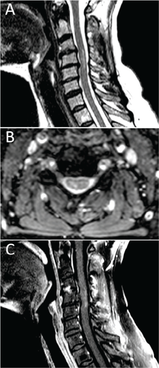 Magnetic resonance imaging showing a C3-5 lesion after presentation of symptoms