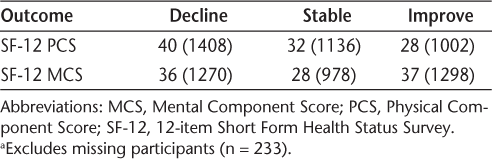 Percentage (frequency) of sample showing change or stability of PCS and MCS scores over a 5-year period (N = 3546a)