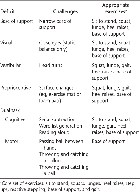 A frequency of three times per week of 45 minutes for the exercise component is required to satisfy the adequate dosage of 50 hours per 6 months set out by Sherrington et al.78 The use of a combination of supervised and home exercise seems favorable to dose and feasibility, with similar outcomes seen in both methods for people with MS.79 In terms of exercise intensity, balance elements should be sufficiently challenging to induce a treatment effect33 and should be targeted toward identified deficits. Strengthening exercises should be aimed at achieving two sets of 10 to 15 repetitions at a sufficient intensity that the individual finds the last repetition to be just achievable.34 Where possible, altering sensory conditions and dual-task challenges should be incorporated in all aspects of exercise.70