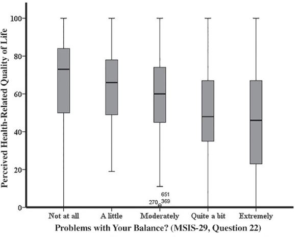 Most older adults with MS report moderate to severe balance problems, which are associated with higher levels of disability and poorer quality of life.