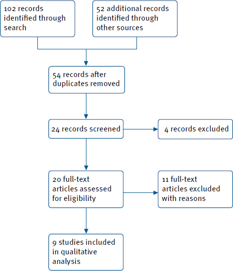 The studies were independently screened by 2 authors (BD, RP) for eligibility. In the first stage, titles and abstracts of studies were assessed; each author independently selected studies via the inclusion criteria and the remaining studies were selected through a full-text study. A third author (VMK) checked for excluded records. All discrepancies were resolved through discussion between the 3 reviewing authors in the presence of a fourth review author (KM).