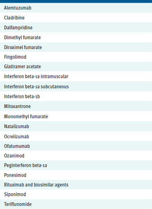 Rae-Grant A, Day GS, Marrie RA, et al. Practice guideline recommendations summary: disease-modifying therapies for adults with multiple sclerosis: report of the Guideline Development, Dissemination, and Implementation Subcommittee of the American Academy of Neurology. Neurology. 2018;90(17):777-788. doi: 10.1212/WNL.0000000000005347