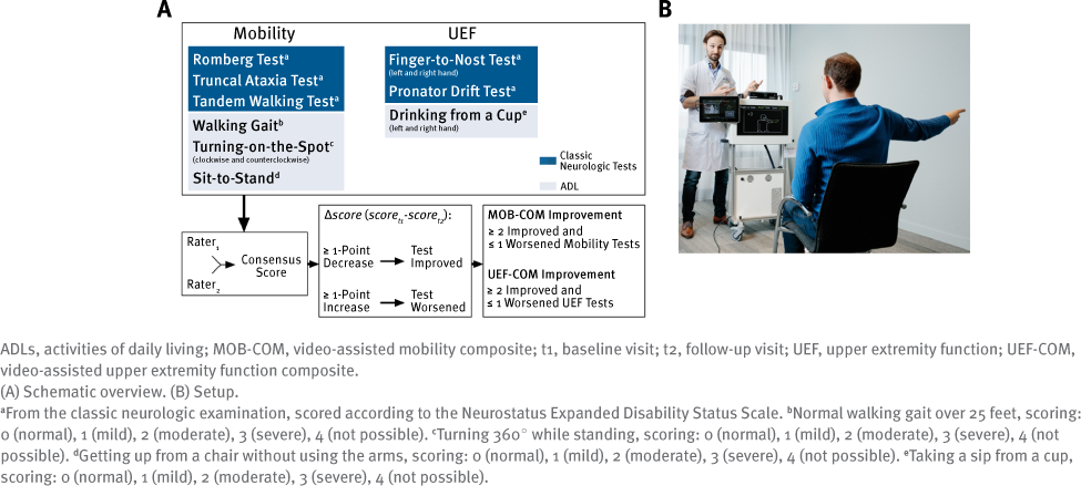 Video-assisted assessment of motor functioning has the potential to improve disability evaluation. Recording patients’ movements on video may improve certain psychometric properties, such as intrarater and interrater variability, and promotes data quality by allowing a visual check on compliance relative to the standardization of performance.15,16 Also, standardized activities of daily living (ADLs) can be added to the assessment and are valuable in measuring patients’ functioning.17