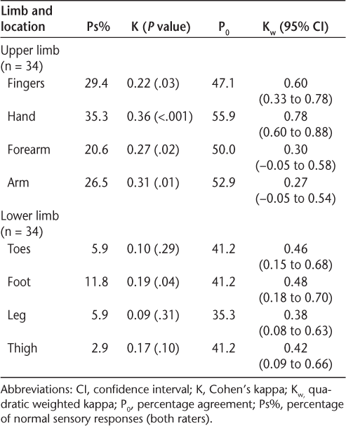 Interrater reliability results of Semmes-Weinstein monofilaments