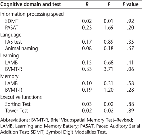 Regression analysis of cognitive reserve index as a predictor of change in cognition in patients with multiple sclerosis
