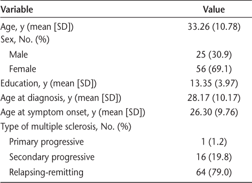 Demographic characteristics of the 81 patients with multiple sclerosis receiving care