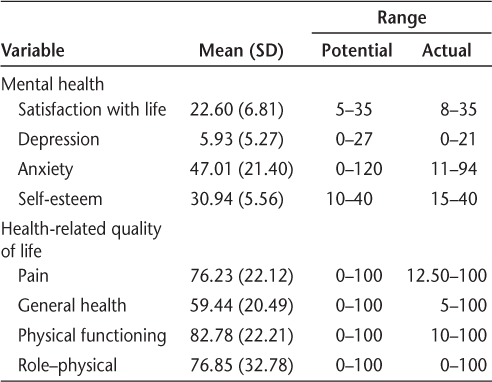 Means, standard deviations, and ranges for all the mental health and HRQOL variables are presented in Table 3.