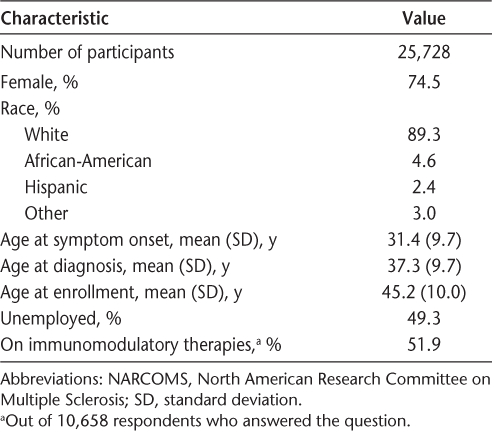 Demographic and disease-related characteristics of the NARCOMS cohort