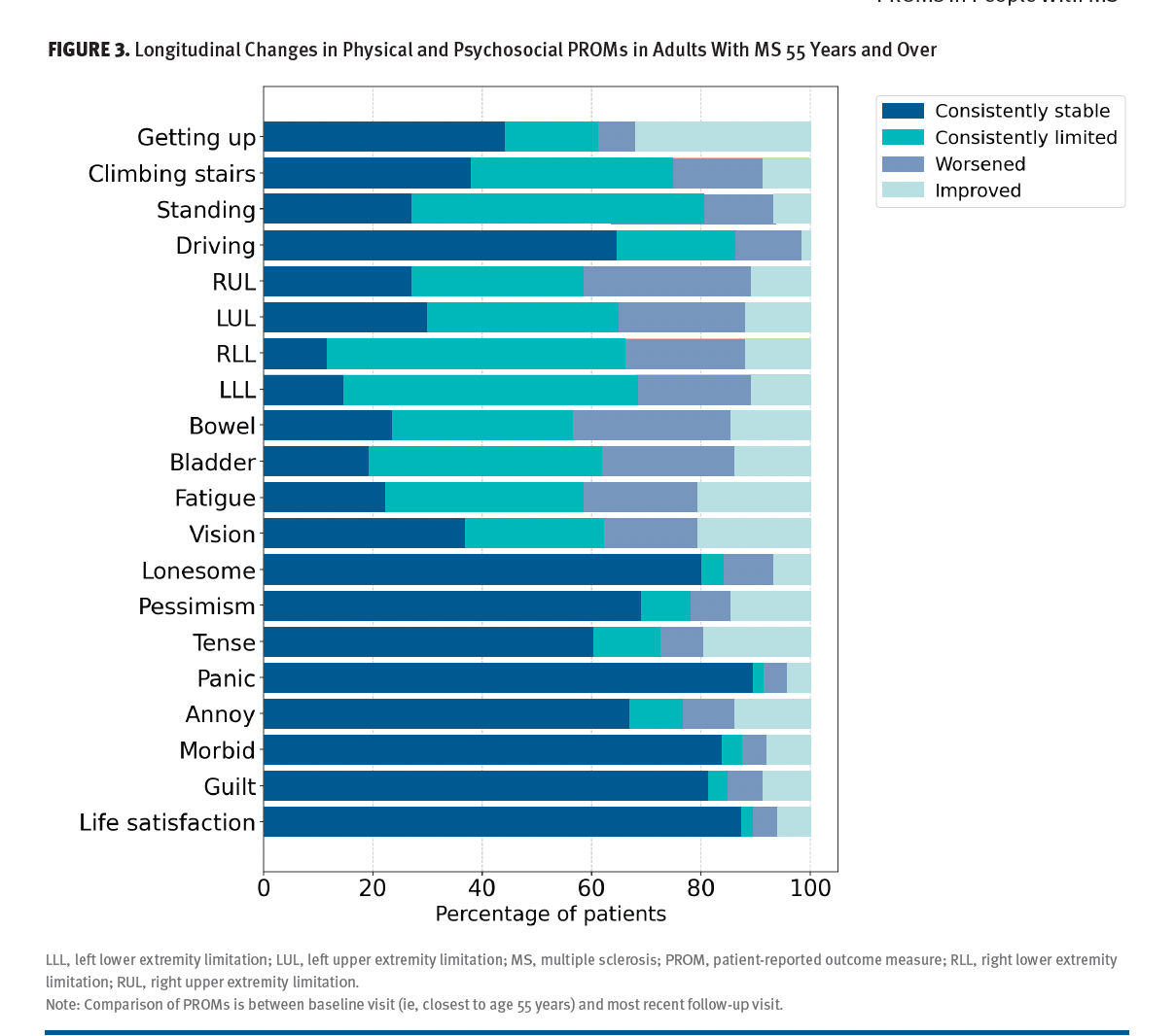 PROMs and Long-Term Changes in People With MS 55 Years and Over as They Age
