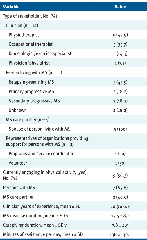 Other recommendations included providing high-quality information about the safety of PA and strategies for maintaining ongoing motivation; highlighting the importance of a strong social support network for PA; and emphasizing PA as a dyadic coping strategy. These recommendations have ample support in existing literature.26,27 The recommendation to include behavioral strategies was not surprising, and it reflects current best practice guidelines for developing health interventions.14 Similar to the present findings, people with MS28 and their caregivers16 have previously reported the need for resources to guide them to available community-based supports for PA. The present findings further emphasize that these resources need to be updated regularly, nationally available, and affordable to promote access for people with MS and their care partners.