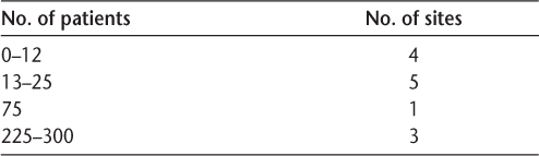 Thirteen clinical practice sites with 24 clinicians were recruited. A variety of other clinic staff at these sites also participated, including medical assistants, nurses, practice managers, and medical students. The resulting participants emerged from a diverse set of disciplines (Table 1), had vastly discrepant numbers of patients with MS (Table 2), and represented a diverse geographic region (Figure 2).
