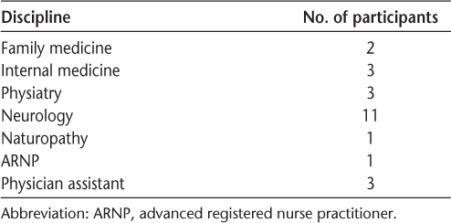 Thirteen participants (87%) appreciated having a mix of specialties represented; the other two were indifferent. One of the family practitioners expressed an interest in seeing more generalists participating. One of the neurologists expressed the value of having different viewpoints, giving an example of the approach from the generalists in treating depression. Several participants commented on the value of having a naturopathic physician as a participant because their viewpoint was unique in the treatment of certain symptoms, such as gastrointestinal tract dysfunction in MS. Many of the neurologists commented on the value of hearing the opinions of other neurologists and “not feeling alone” with some of the difficult decisions regarding disease-modifying therapies. A few of the generalists commented that at times the discussion was very specific to issues of the neurologists (decision making surrounding disease-modifying therapies) but they still appreciated listening to the discussion and learning that often there was no black-or-white answer to most questions.