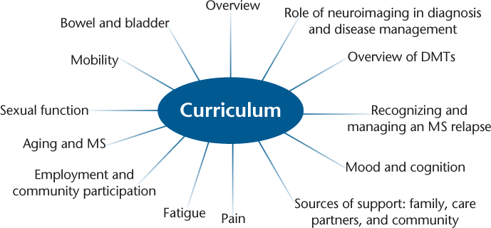 The team identified key educational elements that were practical and addressed the complex and comprehensive aspects of MS care to compose a preliminary syllabus (Figure 1). However, consistent with the Project ECHO model, the syllabus would be modified as the needs of the participating clinicians became more evident. Each educational module was assigned to an MS Project ECHO team member with expertise in that domain, who drafted content that was then reviewed by the team. Resources available through the National MS Society were included with each module. Presentation slides and associated reference materials were archived on the project website.