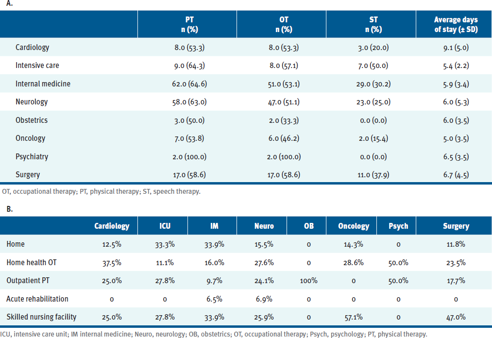 Snapshot of Therapies Accessed (A) and Discharge Location (B) by Service