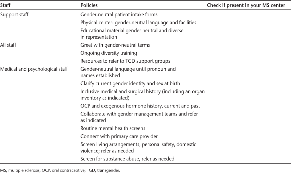 Checklist for Inclusive Care of the TGD Person Living With MS