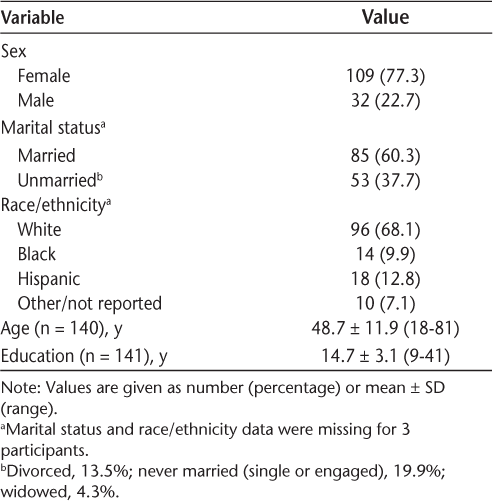 The participants were 141 adult patients who met the eligibility criteria. See Table 1 for more information about demographic variables.