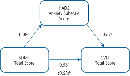 Mediation analysis of relationship between processing speed and verbal learning through anxiety
