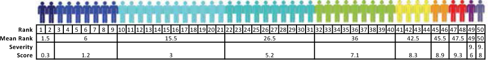 Herbert's severity grading is based on the concept of the Multiple Sclerosis Severity Score (MSSS) introduced by Roxburgh et al.12 The MSSS is a disease duration–adjusted disability rank score, explained in more detail in Figure 1. The disability rank score can be conceptualized as an approximation of the prevalence (frequency) of Expanded Disability Status Scale(EDSS) scores in the reference cohort of patients with the same disease duration. Thus, a patient with an MSSS of 1.7 is as much or more disabled than approximately 17% of patients with the same disease duration. An approximation of rank with prevalence improves the closer the spacing between disability strata gets (Figure 1).