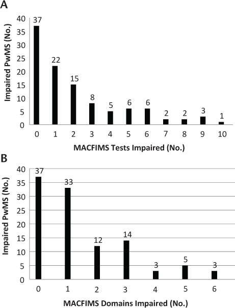 Impairment on Minimal Assessment of Cognitive Function in Multiple Sclerosis (MACFIMS) tests and domains