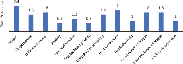 Frequency of symptoms measured using revised MS-Related Symptom Checklist