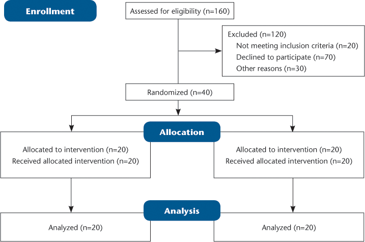 Random allocation to groups was decided by collation of 20 computer-generated even numbers and 20 computer-generated odd numbers. The number list was used to allocate participants an even or an odd participant number at their first appointment. Because of the design of the study, the researcher was not blinded to the treatment arms. Only those randomized to the biofeedback arm were instructed on the use of equipment for self-regulation. At follow-up, 3 months after the last appointment, a packet of questionnaires was sent to each participant, including the CISS, FSS, and DASS. A stamped, self-addressed envelope was included for ease of return.
