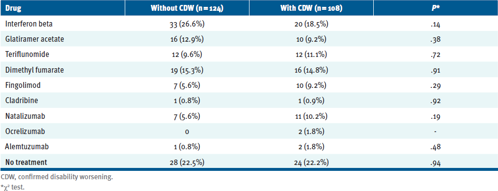 Disease-Modifying Drugs: Patients Without CDW vs With CDW