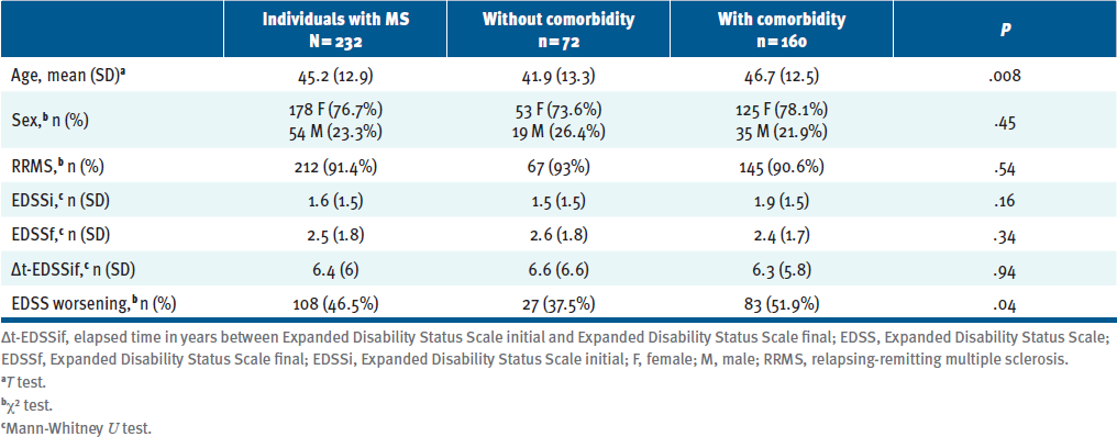 Demographic and Clinical Data: Individuals With Multiple Sclerosis Without vs With Comorbidities