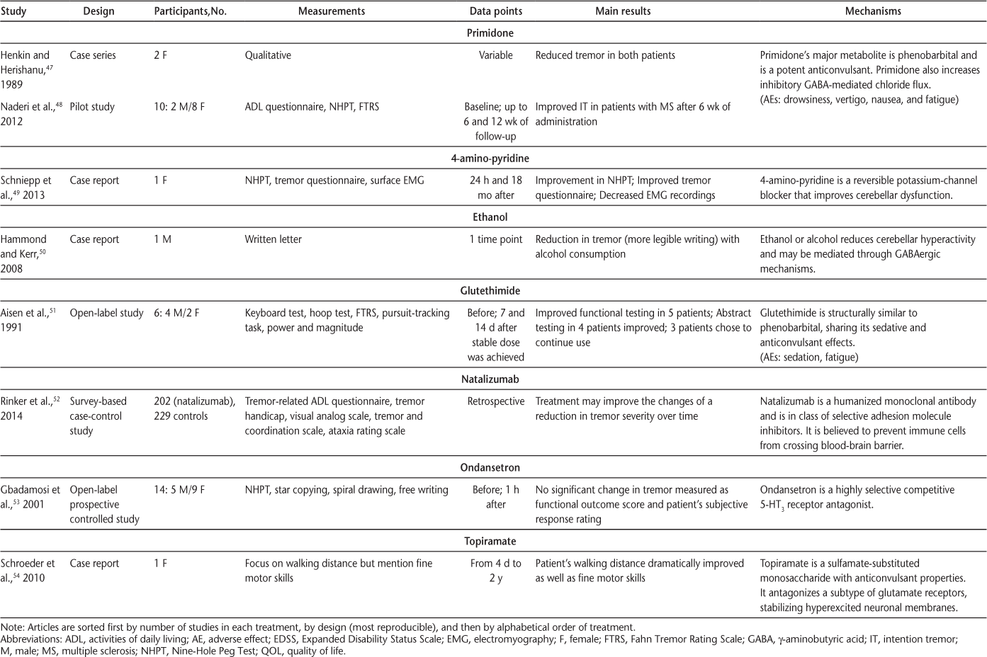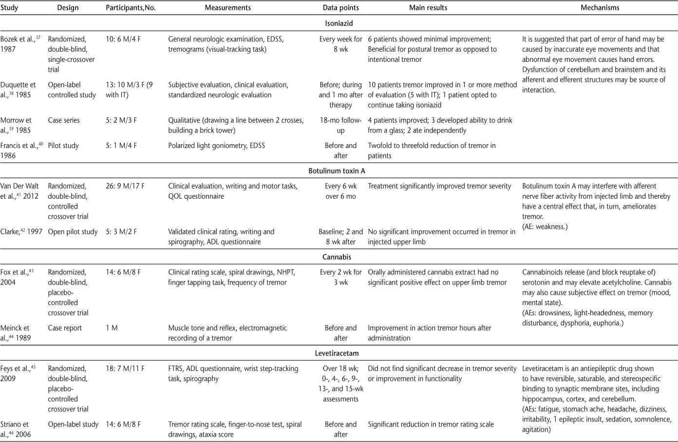 Pharmacologic interventions used to investigate intention tremor in MS (page 2 of 2)