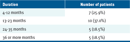 The average duration of therapy by CGRP monoclonal antibody subtype was 10 months for fremanezumab, 9 months for eptinezumab, 26 months for erenumab, and 13.5 months for galcanezumab (TABLE 2). Over the period of the study, the longest duration of treatment with any CGRP monoclonal antibody was 42 months.