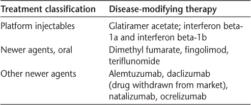Consensus statements providing recommendations for pharmacologic treatments in children and adolescents with MS are based on limited supporting evidence from the observational studies on the effectiveness of disease-modifying therapies (DMTs) in this population.5,6 Currently, more than a dozen treatments approved by the US Food and Drug Administration are available for adult patients with MS. However, fingolimod is currently the first and only DMT approved (in March 2018) for the treatment of pediatric patients with MS in the United States. In ongoing randomized trials in the pediatric population, the safety and efficacy of teriflunomide is being assessed against placebo (clinicaltrials.gov identifier: NCT02201108), and that of dimethyl fumarate is being evaluated against interferon beta-1a (NCT02283853).7 It has been observed that early initiation of treatment in adult patients with MS is associated with better outcomes.8 Moreover, in patients in whom platform injectable agents (glatiramer acetate, interferon beta-1a, and interferon beta-1b) might be less tolerable and might not be able to control the disease adequately, escalation to newer DMTs (Table 1) can be considered.9