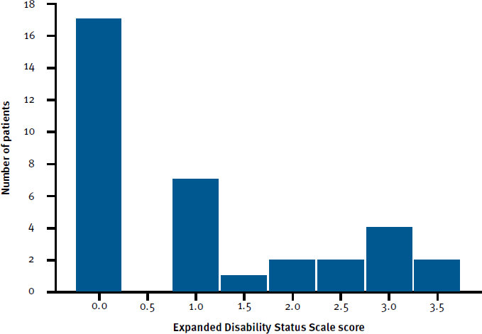 Distribution of Clinically Derived Expanded Disability Status Scale Scores